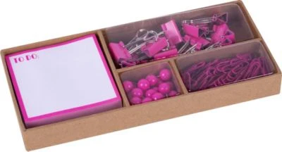 – 225-teiliges Set mit Büroklammern, Pins, Foldbackklammern und Notizzetteln