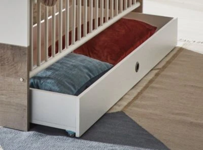 Dieser Bettschubkasten passt zum Selina Kinderbett mit Gitterstäben. Er lässt sich einfach in die Öffnung unterhalb der Liegefläche schieben. So kann der Platz optimal genutzt werden. Bettwäsche, Kissen und Schlafsäcke können hier platzsparend dort aufbewahrt werden, wo sie gebraucht werden.