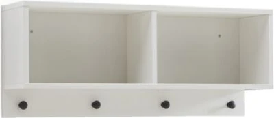 Das Wandregal »Thilo« von arthur berndt bietet zwei offene Fächer mit vier Kleiderhaken, welche unter der Ablage auf einer Leiste angebracht sind. Dadurch erhalten Sie zusätzlichen Stauraum im Babyzimmer und das Regal bietet reichlich Platz für Pflegeutensilien, Kleidung oder Spielzeug. Selbstverständlich können Sie dieses auch als Bücherregal oder für viele andere Zwecke verwenden. Dank des zeitlosen Designs ist das Regal auch ein Kandidat für jedes andere Zimmer und somit universal einsetzbar.