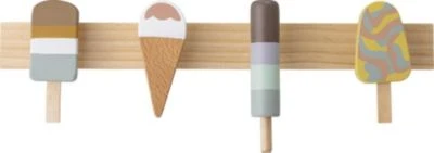 Die wundervolle Garderobe „Zyon“ aus dem Hause Bloomingville MINI begeistert mit einem besonderen Design! Die Holzleiste ist mit vier Kleiderhakten ausgestattet, die wie verschiedene Eissorten aussehen! Von dieser schönen Garderobe sind Kinder garantiert begeistert! Hier können Jacken, Handtücher und mehr schön präsentiert werden.