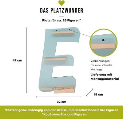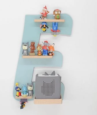 Für alle Fans der beliebten Hörspielbox kommt hier das passende Regal für die Figuren! Mit dem Regal „Buchstabe“ von BOARTI ist die Musikbox gut aufgeräumt und die passenden Figuren können übersichtlich aufgestellt werden. Was hören wir denn heute? Der Abstellplatz für die Musikbox bietet auch Platz für die Ladestation und auf den freien Flächen finden viele der fröhlichen Hörfiguren Platz. Dank der eingebauten Metallbleche bleiben die magnetischen Figuren an ihrem Platz. Das Regal wird an der Wand montiert.