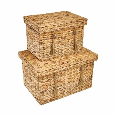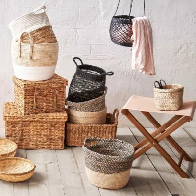 Der geflochtene rechteckige Rush Rope Korb aus Wasserhyazinthe und Metall ist überall in Ihrem Zuhause zur Stelle, wo dies und das sonst kreuz und quer herumliegen würde. Weitere Varianten erhältlich.