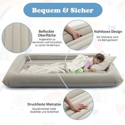 Unser aufblasbares Reisebett bietet Kindern ein gemütliches Plätzchen zum Schlafen.