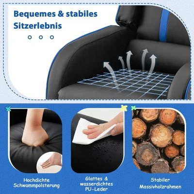Dieser Kindersessel ist mit einer verstellbaren Rückenlehne und Fußstütze ausgestattet. Kinder können aufrecht sitzen, um fernzusehen oder Bücher zu lesen, oder sich hinlegen, um ein Nickerchen zu machen. Gefüllt mit hochelastischem Schwamm sorgt unser Sesselsofa für ein super bequemes Sitzgefühl. 2 Seitentaschen bieten Stauraum für die Lieblingsbücher, Snacks und mehr der Kinder.