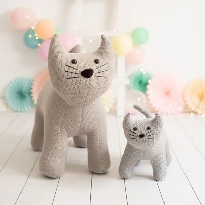 Möchten Sie Ihr Kind mit einem riesigen XXL Plüschtier überraschen? ¡Unser exklusives gehäkeltes Strickkatze heißt Silver und möchte der unzertrennliche Begleiter Ihres Kindes werden! Er besteht aus einer Holzstruktur und ist mit Baumwollstoff gepolstert. Er kann ein Gewicht von 70 kg tragen, so dass er zu einem kuscheligen Sitz wird, um ununterbrochen Spaß zu haben. Ein perfektes Geschenk zum Spielen und zur Dekoration des Kinderzimmers! Erhalten Sie hier Silver das Katze in zwei Größen: groß und klein, die ganze Katzefamilie. PRODUKTABMESSUNGEN: peluche maxi 72x35x67 cm. Peluche mini 43x20x33 cm.