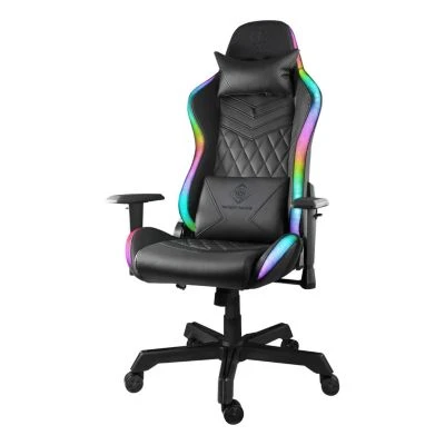 RGB Gaming Stuhl aus Kunstleder mit ergonomischen Ähnlichkeiten zu einem Rennsitz, den Sie in Rallyeautos sehen! Mit hoher Rückenlehne und zusätzlichen Kissen für Kopf- und Rückenlehne haben Sie in diesem Stuhl nach unzähligen Stunden keine Probleme mit Rücken und Nacken. Der Stuhl ist natürlich angehoben und absenkbar, ebenso wie die Armlehnen. Die Kissen für den Rücken und den Nacken können ebenfalls für eine optimale Passform angepasst werden.