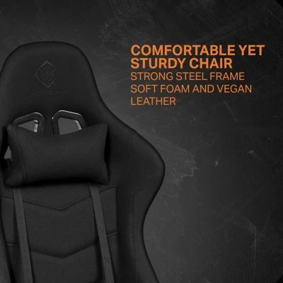 Gaming-Stuhl aus Kunstleder (Ausführung schwarz Canvas stattdessen aus robustem Stoff) mit ergonomischen Ähnlichkeiten zu einem Rennstuhl. Mit hoher Rückenlehne und zusätzlichen Kissen für Kopfstütze und Rückenlehne haben Sie nach unzähligen Stunden in diesem Stuhl keine Probleme mit Rücken und Nacken. Der Stuhl ist natürlich komplett nach Wunsch einzustellen, in Höhe und kippbar ebenso wie die Armlehnen. Die Kissen für Rücken und Nacken können nach Wunsch für eine optimale Passform angepasst werden.Spezifikationen: