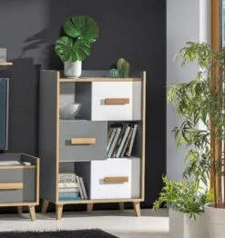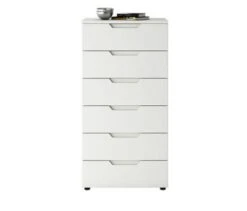 Feldmann-Wohnen Highboard Alex Kommode Weiß Hochglanz / Sanremo Eiche Neu – Farbe Der Griffe Wählbar