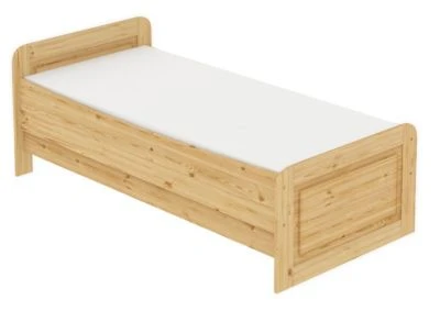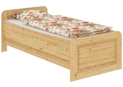 Beschreibung:Das Bett ist aus massiver europäischer Kiefer gefertigt.Das Holz stammt aus schonend bewirtschafteten Wäldern mit nachwachsender Bewirtschaftung ohne FremdstoffeDie sehr stabile Ausführung eignet sich auch toll als Gästebett z.B. für Hotels und Pensionen.Das Einzelbett ist solide verarbeitet, die Oberfläche fein geschliffen und natur lackiert.Das Holzbett lässt sich dank der Markenbeschläge und dessolide verarbeiteten Materials sehr leicht und zügig aufbauen.Die Einlegetiefe kann variabel montiert werden.