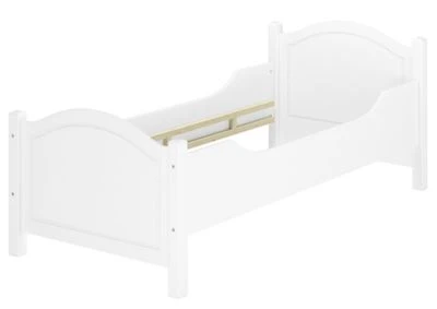 Das Holz stammt aus schonend bewirtschafteten Wäldern= nachwachsende Bewirtschaftung ohne FremdstoffeAuch sehr gut geeignet als Gästebett z.B. für Hotels und Pensionen durchdie sehr stabile Ausführung.Das Einzelbett ist solide verarbeitet, die Oberfläche fein geschliffen undwaschweiß (Lichteinfall kann die Oberflächenfarbe von Massivholz verändern) lackiert (d.h. die Holzstruktur scheint noch leicht durch).Das Holzbett lässt sich dank der Markenbeschläge und dessolide verarbeiteten Materials sehr leicht und zügig aufbauen.Die Einlegetiefe kann variabel montiert werden. Hierzu wird eine zusätzliche Auflageleistemit vorgebohrten Löchern mitgeliefert sowie Klötzchen als Abstandshalter in 6 cm und 12 cm Länge.