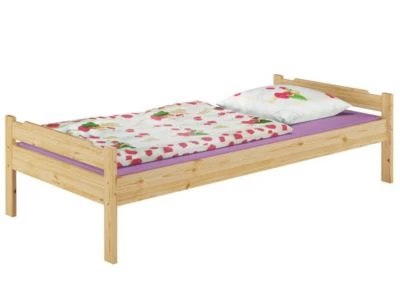 Beschreibung:Schönes Einzelbett ob für Kinder oder JugendlicheBett aus massiver europäischer Kiefersolide Verarbeitungdas Holz stammt aus schonend bewirtschafteten Wäldern= nachwachsende Bewirtschaftung ohne Fremdstoffefein geschliffene Oberflächen, natur lackiertMarkenbeschläge für leichte MontageZur Pflege Bett nebelfeucht abwischen
