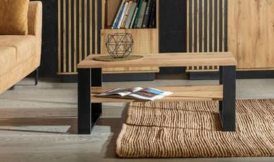 Couchtisch Modernes Design Ein funktioneller und praktischer Couchtisch, der Ihnen ausreichend Stauraum für Nützliches bietet. Dieser Couchtisch lässt sich wunderbar kombinieren. Material: – Korpus & Front: Spanplatte mit laminierter Kunststoffoberfläche – Beine: Metall Farbe: Wotan Eiche / schwarz Ausstattung / Abmessungen (ca. Maße): – 1 Ablage – Belastbarkeit Tischplatte: 15kg – B/T/H: 100cm / 56cm / 48cm