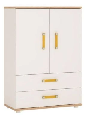 Kommode junges Design – Jugendprogramm Moderne und funktionelle Kommode für´s Kinder- oder Jugendzimmer. Die Farbe der Griffe ist wählbar. Die Kommode lässt sich hervorragend mit anderen Möbelstücken kombinieren und bietet Ihnen ausreichend Stauraum. Material: – Korpus: Faserplatte mit laminierter Kunststoffoberfläche – hochglänzende Front: Mitteldichte Faserplatte (MDF) – Griffe aus Kunststoff Farbe: Korpus weiß matt / Front weiß hochglänzend – mit Absetzungen (Ober- und Unterboden) in sanremo eiche. Mögliche Grifffarben: orange, limone, lila oder opalino (grau) Ausstattung / Abmessung (ca. Maße): – 2-türig, innen 1 Einlegeboden – unten 2 Schubkästen – B/T/H: 81 cm / 40,2 cm / 115,7 cm Ergänzende Elemente aus dieser Serie (siehe Bilder unten) finden Sie in unseren weiteren Angeboten!