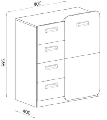 Highboard Modernes Design / Farbe wählbar Ein funktionelles und praktisches Highboard, das Ihnen ausreichend Stauraum für Nützliches bietet. Dieses Highboard lässt sich wunderbar kombinieren. Das Highboard ist in folgenden Farben erhältlich: – Nash Eiche / weiß – Esche Coimbra / lindgrün – Esche Coimbra / violett Material: Spanplatte mit laminierter Kunststoffoberfläche Ausstattung / Abmessungen (ca. Maße): – 1 Tür, innen 2 Böden – 4 Schubladen – B/T/H: 80 cm / 40 cm / 99,5 cm
