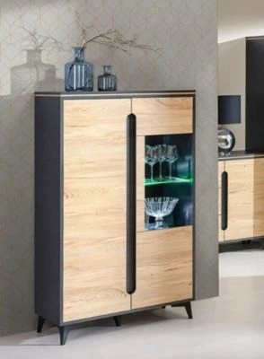 Highboard Skandinavisches Design / Farbe wählbar Ein funktionelles und praktisches Highboard, das Ihnen ausreichend Stauraum für Nützliches bietet. Dieses Highboard lässt sich wunderbar kombinieren. Das Highboard ist in folgenden Farben erhältlich: – Fresco grau / Bergesche – brilliantweiß / Bergesche Material: Spanplatte mit laminierter Kunststoffoberfläche Ausstattung / Abmessungen (ca. Maße): – Griffos – ohne Beleuchtung – 2 Türen, innen 1 Glasboden & 5 Holzböden – mit Glaseinsatz – B/T/H: 90 cm / 40 cm / 151 cm