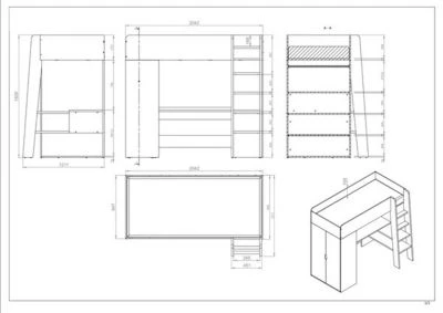 Hochbett modern und funktionell Funktionelles und praktisches Hochbett, das Ihren Kindern ausreichend Stauraum für Nützliches bietet. In dem Hochbett ist ein Schreibtisch und ein Kleiderschrank integriert. Die Federkernmatratze schafft eine gemütliche Liegefläche. Material: Faserplatte mit laminierter Kunststoffoberfläche Farbe: weiß – Absetzungen: congo Ausstattung / Abmessungen (ca. Maße): – Korpus & Front 16mm stark – Grifflos – Maße: L/T/H: 204 cm / 95 cm / 182 cm – Liegefläche: 90 x 200cm – Matratze mit integriertem Lattenrahmen, untere Seite mit schwarzen Spannstoff – Federkernmatratze mit Polyätherschaumummantelung – Kernhöhe 12cm – Gesamthöhe 18cm – Federkern: 184 hochwertige Federn (bezogen auf das Federkernmaß 90x200cm) – Matratzenbezug gesteppt, mit Reißverschluss, aus 100% Polyester, Gewicht des Bezuges: ca. 180g/m² – Rahmen 89,5x200x5cm, 3x Verstärkungsbalken – Front-und Seitenstützen aus T25-Schaum – Deckplatte T25 Schaumstoff 2cm – 2 x 400g Filz – 1 integrierter Schrank, 2-türig innen 1 Boden & Kleiderstange – 1 integrierter Schreibtisch mit Ablagen – mit Leiter – ohne Bettware