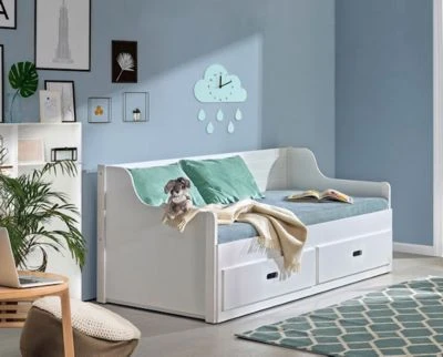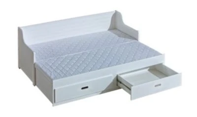 Kinderbett Modernes Design Ein funktionelles und praktisches Kinderbett, das Ihren Kindern Stauraum und zwei Schlafplätze bietet. Dieses Hochbett lässt sich wunderbar kombinieren. Farbe: weiß Material: Kiefer, gebeizt Ausstattung / Abmessungen (ca. Maße): – mit Lattenrost – Liegeflächen: 80x200cm – 2 Schubladen – ohne Matratze – B/T/H: 206 cm / 90 cm / 81 cm