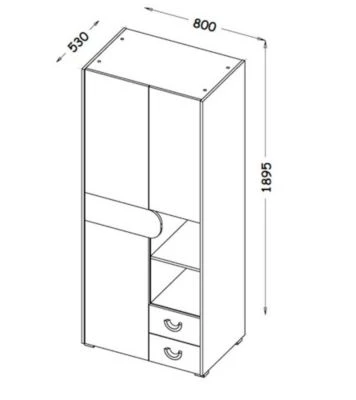 Kleiderschrank Modernes Design Ein funktioneller und praktischer Kleiderschrank, der Ihnen ausreichend Stauraum für Nützliches bietet. Dieser Kleiderschrank lässt sich wunderbar kombinieren. Material: Spanplatte mit laminierter Kunststoffoberfläche Farbe: Korpus: graphit hell Front: Nash Eiche / weiß Ausstattung / Abmessungen (ca. Maße): – 2 Türen, innen 1 Boden & 1 Kleiderstange – 2 Schubladen – 2 offene Fächer – B/T/H: 80cm / 53cm / 189,5cm