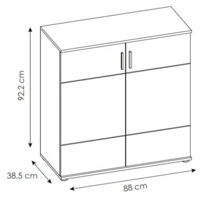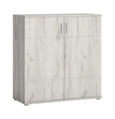 Kommode praktisch & modern Eine moderne Kommode die sich hervorragend kombinieren lässt. Das elegante Design passt zu vielen Wohnungseinrichtungen und bietet viel Platz für Nützliches und Dekoratives. Farbe: wildeiche weiß gewischt Material: Spanplatte mit pflegeleichter laminierter Kunststoffoberfläche Ausstattung / Abmessungen (ca. Maße): – Griffe: Kunststoff, alufarbig – Zierstreifen: Kunststoff, alufarbig – 2 Türen, innen 1 Boden – max. Belastbarkeit vom Einlegeboden ca. 5 kg – max. Belastbarkeit vom Oberboden ca. 20 kg – max. Belastbarkeit vom Unterboden ca. 10 kg – B/T/H: 88 cm / 38,5 cm / 92 cm