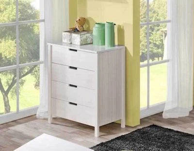 Kommode Modernes Design Eine funktionelle und praktische Kommode, die Ihnen ausreichend Stauraum für Nützliches bietet. Diese Kommode lässt sich wunderbar kombinieren. Farbe: Kiefer Massiv weiß gebeizt Material: Kiefer, gebeizt Ausstattung / Abmessungen (ca. Maße): – 4 Schubladen – B/T/H: 90 cm / 47 cm / 95 cm