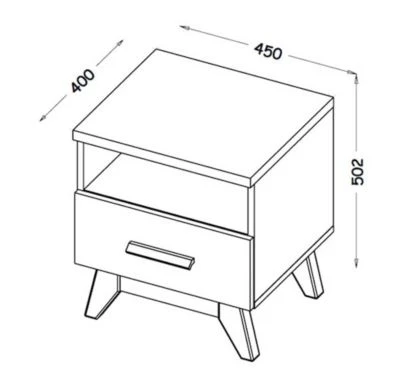 Nachtkonsole Skandinavisches Design Eine funktionelle und praktische Nachtkonsole, in einer harmonischen Farbkombination. Diese Nachtkonsole lässt sich wunderbar kombinieren. Material: Spanplatte mit pflegeleichter Kunststoffoberfläche Farbe: Nash Eiche / Andersen Kiefer Ausstattung / Abmessungen (ca. Maße): – 1 Schublade – 1 offenes Fach – B/T/H: 45cm / 40cm / 50cm