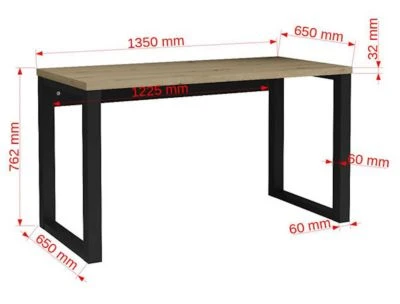Schreibtisch modernes Design Ein praktischer und individuell nutzbarer Schreibtisch. Der Schreibtisch lässt sich hervorragen mit anderen Möbelstücken kombinieren. Material: laminierte Spanplatte Farbe: Artisan Eiche / schwarz Ausstattung / Abmessung (ca. Maße): – mit ABS-Kanten – Tischplatte 32mm stark – B/T/H: 135 cm / 65 cm / 75 cm