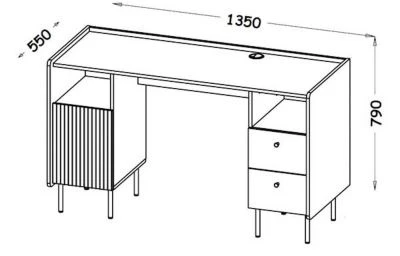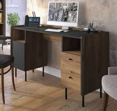 Schreibtisch 1-türig / mit Schubladen Ein funktioneller und praktischer Schreibtisch, der Ihnen ausreichend Stauraum für Nützliches bietet. Dieser Schreibtisch lässt sich wunderbar kombinieren. Farbe: Warmia Nussbaum / san sebastian / schwarz matt Material: Faserplatte mit pflegeleichter Kunststoffoberfläche Ausstattung / Abmessungen (ca. Maße): – 1 Tür, innen 2 Böden – 2 offene Fächer – 2 Schubladen – Belastbarkeit vom Oberboden: 26kg – Belastbarkeit der Böden: 7kg – Belastbarkeit der Schubladen: 3kg – B/T/H: 135 cm / 55 cm / 79 cm