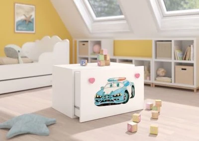 Spielzeugtruhe mit Motiv modernes Design / Motiv wählbar Eine moderne und funktionelle Spielzeugtruhe mit niedlichen Motiven. Die Spielzeugtruhe lässt sich prima kombinieren und bietet viel Stauraum folgende Motive sind erhältlich: – Ballerina – Ballerina mit Einhorn – Zug – Rennauto – Dinos – Galaxy – Einhorn – Bagger – Katze – Fee – Teddybär – Princess – Polizeiauto – Flugzeug – Elefant – Meerjungfrau – Prinzessin – Meerestiere Farbe: weiß Material: laminierte Faserplatte Ausstattung / Abmessungen (ca. Maße): – Maße: B/T/H: 70 cm / 41 cm / 41 cm – 1 Schublade – Herz Holzgriffe in pink