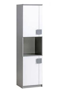 Stauraumschrank Modernes Design / Farbe wählbar Ein funktioneller und praktischer Stauraumschrank, der Ihnen ausreichend Stauraum für Nützliches bietet. Dieser Stauraumschrank lässt sich wunderbar kombinieren. Der Stauraumschrank ist in folgenden Farben erhältlich: – anthrazit / weiß – Santana Eiche / grau Material: Spanplatte mit laminierter Kunststoffoberfläche Ausstattung / Abmessungen (ca. Maße): – 2 Türen, innen je 1 Boden – 1 offenes Fach – Türanschlag wechselbar – B/T/H: 45 cm / 40 cm / 187 cm