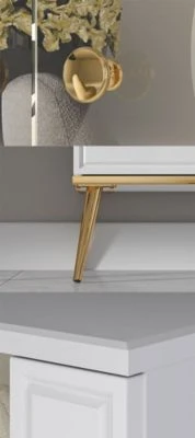 Stauraumvitrine Goldin Die moderne und geräumige Stauraumvitrine bietet Ihnen viel Stauraum und lässt sich hervorragend kombinieren. Material: – Korpus: laminierte Faserplatte, Glas – Fronten: Mitteldichte Faserplatte (MDF), Glas Farbe: – Korpus: weiß matt / Bodenplatte gold – Fronten: weiß Hochglanz Ausstattung / Abmessung (ca. Maße): – goldene Bodenplatte – 2 Glastüren, 2 Holztüren, 2 Glaseinlegeböden, 1 Holzeinlegeboden – goldene Metallknopfgriffe und Metallfüße – inkl. Beleuchtung – Belastbarkeit der Einlegeböden: Glas 3kg/Holz 10kg – B/T/H: 92 cm / 40 cm / 152 cm Passende Artikel aus dieser Serie finden Sie in unseren weiteren Angeboten (siehe Bilder unten)!