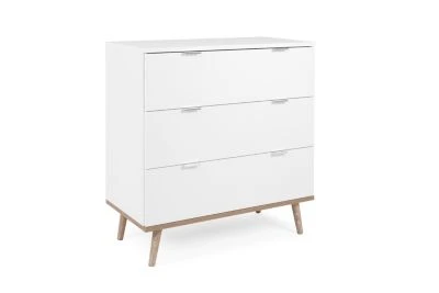 Lieferumfang: Kommode, Montagematerial und Montageanleitung (ohne Dekoration) Selbstaufbau, mit ausführlicher Montageanleitung Bitte beachten Sie, dass aufgrund der Mehrpaket-Zustellung die Lieferung an zwei aufeinander folgenden Werktagen erfolgen kann! Skandinavische Serie Massivholz-Füße 3 Schubkästen hochwertige Verarbeitung