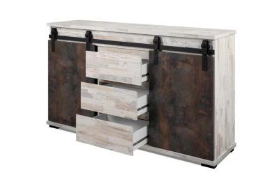 Lieferumfang: Kommode, Montagematerial und Montageanleitung (ohne Dekoration) Selbstaufbau, mit ausführlicher Montageanleitung Bitte beachten Sie, dass aufgrund der Mehrpaket-Zustellung die Lieferung an zwei aufeinander folgenden Werktagen erfolgen kann! 2 Schiebetüren und 3 Schubkästen Serie mit Metallreling 25 mm Top-/Bodenplatte grifflos Fronten im Dekor Na Pali