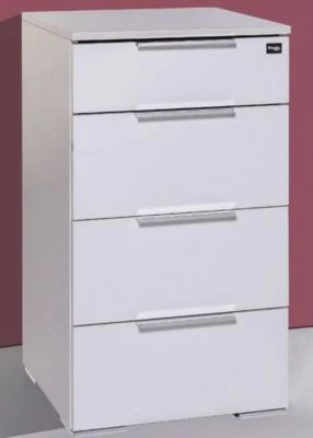 Nachtkommode Level up praktisch & modern Moderne und praktische Nachtkonsole in einem stylischen Design. Diese Nachtkonsole bietet Ihnen sehr viel Stauraum und lässt sich hervorragend kombinieren. Farbe: weiß Material: Faserplatte mit pflegeleichter Kunststoffoberfläche Ausstattung / Abmessungen (ca. Maße): – Innendekor Leinen grau – 4 Schubladen, mit Selbsteinzug – B/T/H: 41 cm / 41 cm / 74 cm