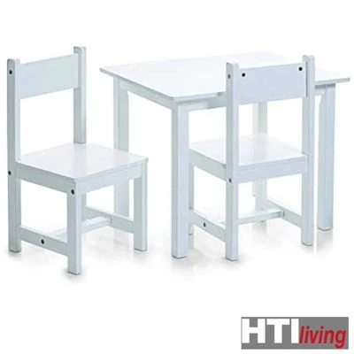 Diese weiße Kinder-Sitzgruppe ist ein echter Hingucker im Kinderzimmer Ihres Kindes. Egal ob zum Malen, Basteln oder nur um ein Buch anzuschauen- der Tisch und die beiden Stühle sind genau das Richtige für Ihren kleinen Schatz. Mit den Dekorstickern machen Sie die Sitzgruppe zu einen Einzelstück und die Kids haben Spaß dabei. Die Sitzgarnitur ist sehr pflegeleicht und kann schnell und unkompliziert selbst montiert werden. Die Sticker werden extra mitgeliefert und können daher selbst angebracht werden. Maße Tisch: 59 x 47 x 45 cm, Maße Stuhl: 28 x 28 x 53 cm