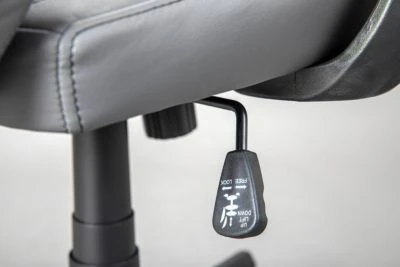 Der Drehstuhl Lysander der Marke Inter Link kann auf die individuellen Bedürfnisse angepasst werden. Die Sitzhöhe lässt sich individuell einstellen, außerdem kann der Widerstand der Rückenlehne über eine integrierte Gewichtseinstellung unter der Sitzfläche eingestellt werden. Die Rückenlehne ist ergonomisch geformt, üppig gepolstert und umschließt den Rücken sehr angenehm. Durch die fünf Rollen ist auch eine ideale Bewegungsfreiheit gegeben.