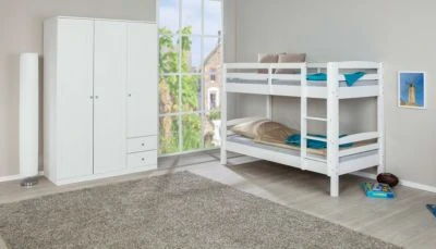Das Etagenbett „Rick“ aus massiver Kiefer bietet einen sehr bequemen Schlafplatz, in der Ihre Kinder das Land der Träume entdecken können. Mit der senkrechten Leiter gelangt man in den oberen Schlafbereich, der mit einer Absturzsicherung gesichert ist. Wollen beide Kinder ihr eigenes Kinderzimmer bekommen, lässt sich das Bett zu zwei Einzelbetten umstellen. So ist eine lange Verwendung garantiert.