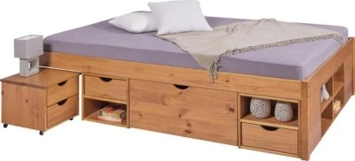 – Bett mit tollen Stauraumlösungen