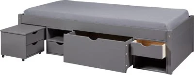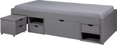 Die perfekte Lösung für das Gäste-, Kinder- und Jugendzimmer! Mit dem Funktionsbett TILL kommt ein wahres Stauraum-Wunder in einem tollen und anpassbaren Design für ruhige Schlafmomente. Das praktische Bett verbindet zeitlosen Stil und höchste Funktionalität und passt in jedes Wohnumfeld. In den Schubkästen können viele Utensilien verstaut werden und die Schubladen können auf verschiedene Weisen montiert werden. Mit dabei ist ein Nachttisch, der dank der Rollen flexibel und beweglich ist. Die Verarbeitung aus Massivholz sorgt für Langlebigkeit und ist stabil und robust. Eine bebilderte Schritt-für-Schritt-Montageanleitung ist im Lieferumfang enthalten.