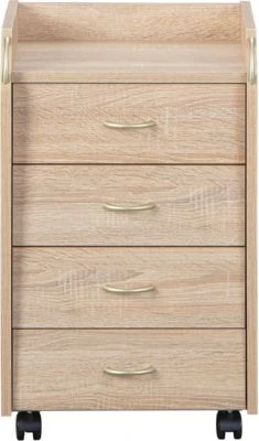 Der stabile Rollcontainer THORE besitzt vier geräumige Schubladen und eine Ablage.Dank der leichtgängigen Kunststoffrollen und der beidseitig montierten Griffe kann er jederzeit da platziert werden, wo er benötigt wird.