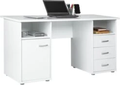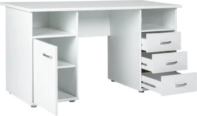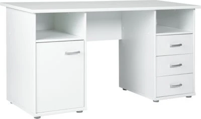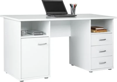 Der Schreibtisch „Forus“ von Inter Link zeigt sich in einem minimalistisch schlichtem Design und schafft viel Stauraum für wichtige Unterlagen. Ob im Büro oder im Kinderzimmer, dieser Schreibtisch passt in jeden Raum. Er überzeugt mit zwei offenen Nischen, drei Schubladen und einem Schrankteil mit einer Tür und zwei Fächern.