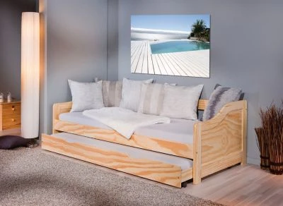 Mit dem Sofabett Kiesby ist auch spontaner Übernachtungsbesuch kein Problem mehr. Mit nur einem Handgriff lässt sich an der Vorderseite eine zweite Liegefläche ausziehen, sodass auch für die Gäste einer gemütlichen Nacht nichts im Wege steht.