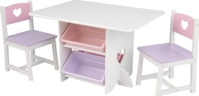 Die Kindersitzgruppe Heart von KidKraft ist ein Traum in Weiß und Pastell. Sie ist sehr stabil und verfügt über extra abgerundete Kanten. Ein liebevolles Detail sind die Herzformen an Tisch und Stuhl.