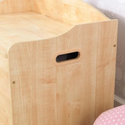 Die Griffmulden an beiden Seiten erleichtern Eltern das Tragen und Umstellen der Truhe.
