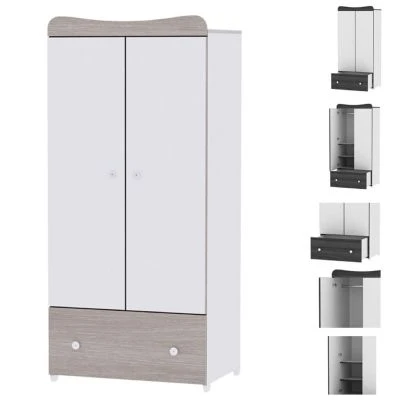 • zwei Türen, große Schublade, Kleiderstange, ab Geburt geeignet