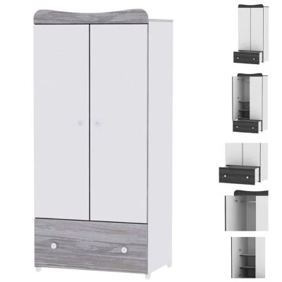 • zwei Türen, große Schublade, Kleiderstange, ab Geburt geeignet