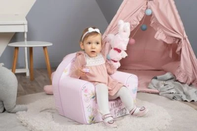 Der Kindersessel Little fairy von knorrtoys begeistert alle Kids durch seine Bequemlichkeit. Nicht nur die Sitzfläche, sondern auch die Armlehnen sind aus weichem Schaumstoff und mit Baumwolle überzogen. Dank der tollen Farbe und des bunten Aufdrucks ist er der absolute Hingucker im Kinderzimmer. Ihr Kind wird sich in diesem Sessel sicher und geborgen fühlen und er lädt die Kleinen zum Entspannen und Schlummern ein. Durch den Schaumstoff ist der Sitz außergewöhnlich leicht und dennoch stabil. Sogar die Kleinsten sind dadurch in der Lage, den Sessel mühelos im ganzen Zimmer hin und her zu schieben.