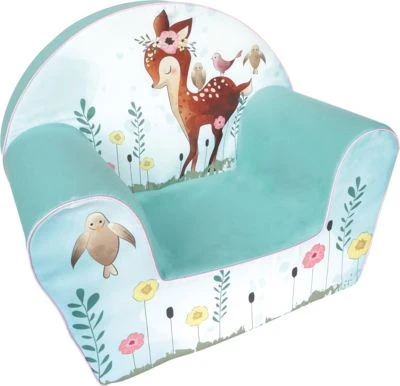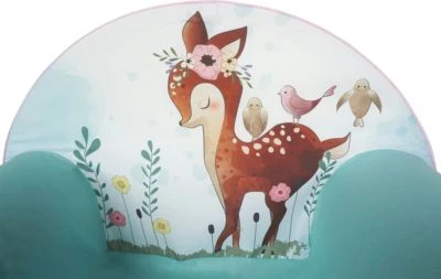 In zarten Pastellfarben zeigt sich dieser gemütliche Sessel. Das zarte Rehkitz schafft eine geborgene Atmosphäre, in der sich die Kleinen beim Sitzen so richtig wohlfühlen können. Die Sitzhöhe ist perfekt für Kinder geeignet und dank der weiche Schaumstoff macht das Sitzen zu einer gemütlichen Angelegenheit. Der Bezug besteht aus hochwertiger Baumwolle und ist zum Waschen abnehmbar. Zum Ausruhen und Kuscheln perfekt geeignet!