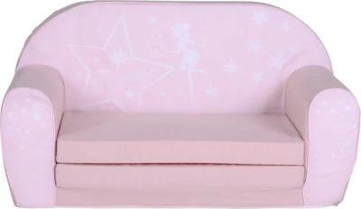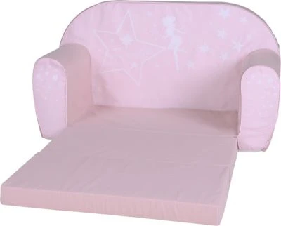 Dieses ausklappbare Kindersofa von knorrtoys begeistert alle Kids durch seine Bequemlichkeit. Nicht nur die Sitz- und Liegefläche, sondern auch die Armlehnen sind aus weichem Schaumstoff und mit Baumwolle überzogen. Dank der tollen Farbe und des hübschen Aufdrucks mit Feen- und Sternenmotiven ist es der absolute Hingucker im Kinderzimmer. Ihr Kind wird sich auf diesem Sofa sicher und geborgen fühlen und es lädt die Kleinen zum Entspannen und Schlummern ein. Es kann auch als kleine Beistellcouch oder als Liegefläche eingesetzt werden. Durch den Schaumstoff ist das Sofa außergewöhnlich leicht und dennoch stabil. Sogar die Kleinsten sind dadurch in der Lage, das Sofa mühelos im ganzen Zimmer hin und her zu schieben.