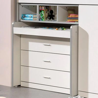 • Material: MDF, beschichtet; Auszüge & Scharniere: Metall; mit Liegeflächensicherung an Vorder- und Rückseite (Absturzschutz)