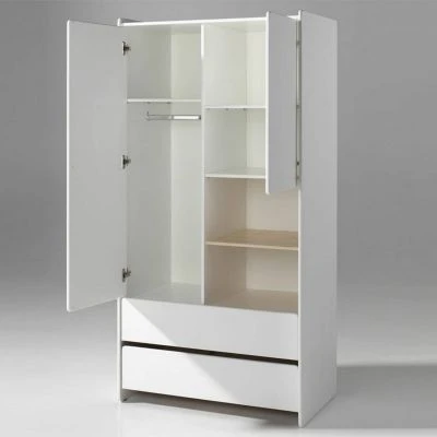 • Hinter beiden Türen jeweils ein Fachboden, Kleiderstange auf der linken Seite